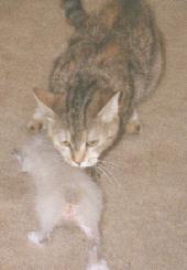 from other cats. She died soon after we returned. I miss her stealing food from my plate, and sharing my breakfast in the morning. I miss her greating me at the door, and being curled up with the kittens. |